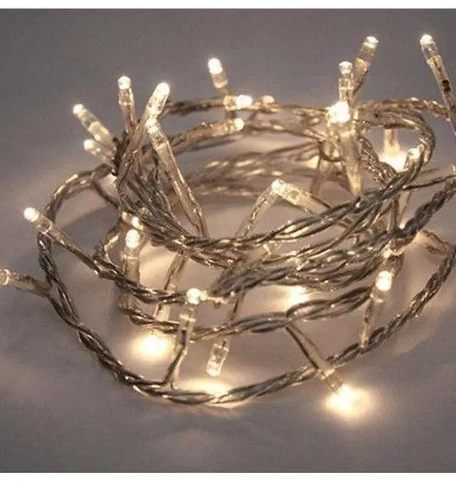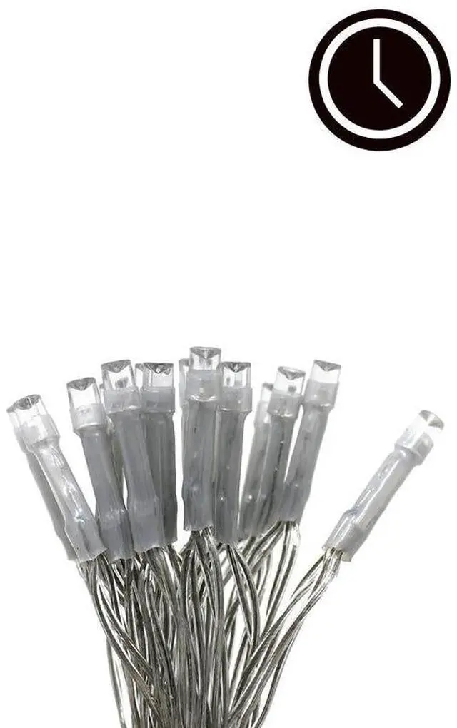 These 30 LED clear cable string lights feature a timer function for hassle-free use and a compact battery pack for portability. Perfect for blending seamlessly into any indoor décor, available in warm white.