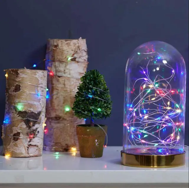 Transform any space with these 50 LED multicolor fairy string lights. Battery operated and versatile for indoor or outdoor use, they feature 8 lighting modes and a built-in 6-hour timer for effortless operation. Perfect for holidays, parties, weddings, or everyday décor.