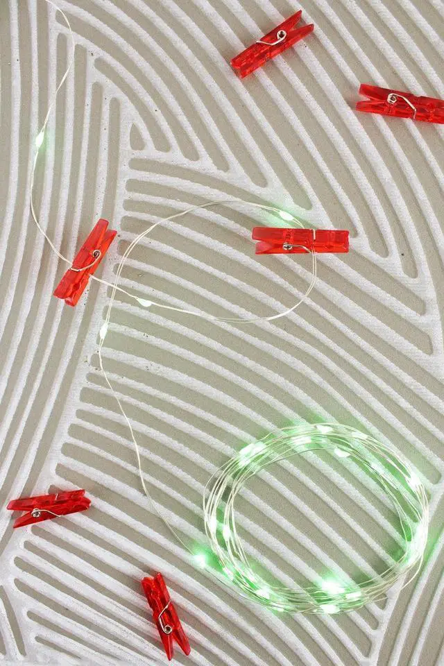 Get festive with these 36 LED red photo clip string lights. Perfect for displaying holiday cards, pictures, or art on walls, doors, or above a fireplace. Battery operated for easy placement anywhere.