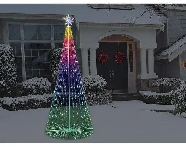 This 12ft RGB tree light features vibrant colors and multiple lighting modes, controlled via an IR controller and 32-button remote. Powered by a 29V/48W transformer, it comes with a 6M lead wire and is IP44 rated for safe indoor and outdoor use.