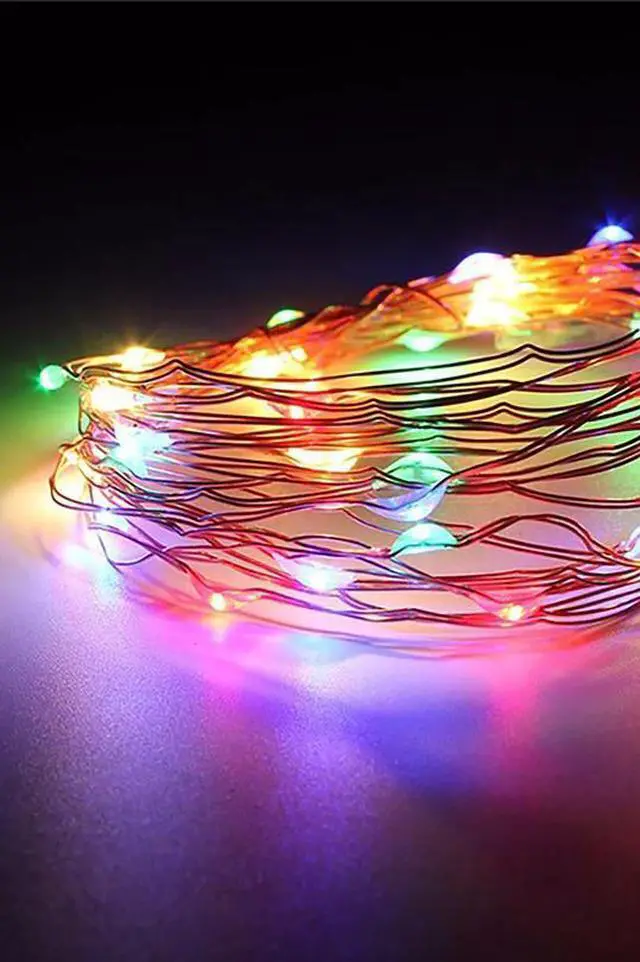 Silver copper wire twinkles with 30 warm white LED lights to create an inviting glow. Perfect for wrapping around a headboard, hanging behind a sheer curtain, or illuminating a bookshelf. Bendable and easy to shape for a custom look.