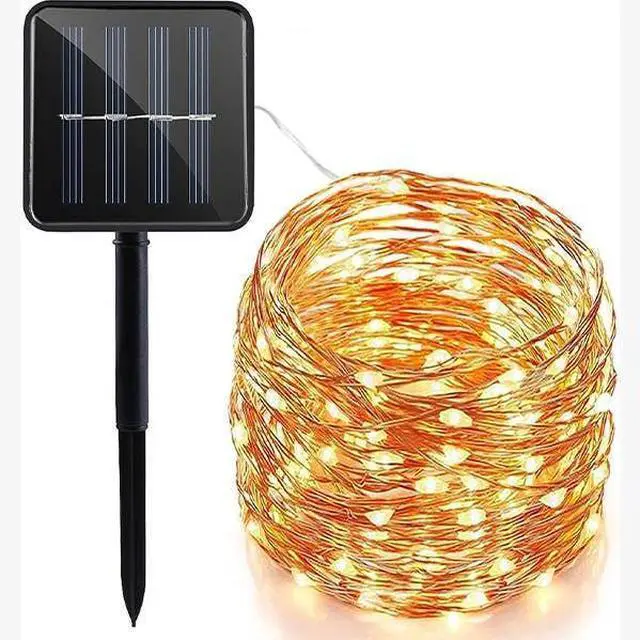 Illuminate your indoor and outdoor spaces with these 32ft 100 LED solar fairy lights, featuring warm white microdot copper wire for a magical glow. Eco-friendly and solar-powered, they automatically light up at night, perfect for gardens, patios, parties, and cozy home décor.