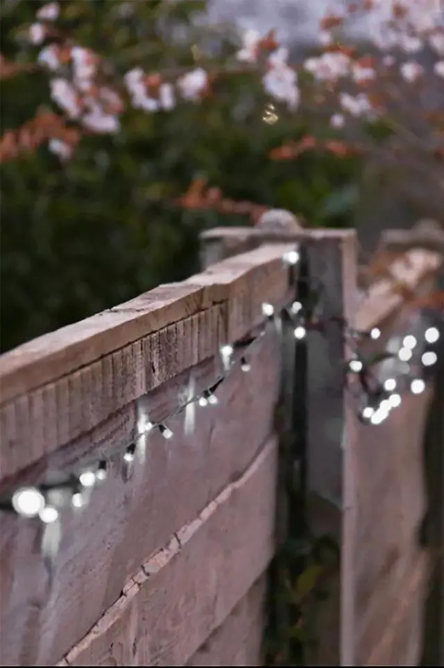 Solar powered outdoor string lights with 200 high-quality LED bulbs that automatically charge during the day and light up at night. Waterproof, energy-efficient, and flexible wire design ideal for patios, balconies, gardens, trees, and gazebos.