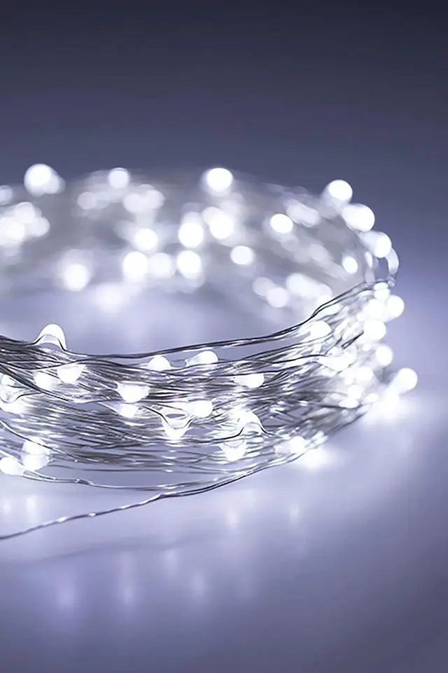 Create a warm and inviting glow with these 30 LED silver copper fairy string lights. Perfect for wrapping around headboards, hanging behind curtains, or illuminating bookshelves, the flexible wire allows you to bend and shape the lights for a customized look. Battery operated for easy placement, theyre ideal for adding charm to any indoor space.