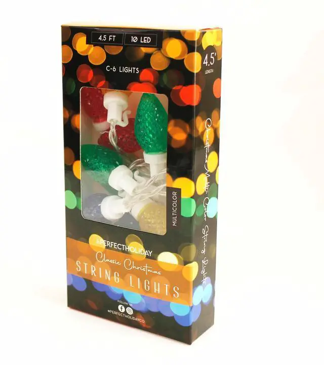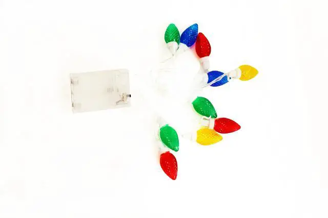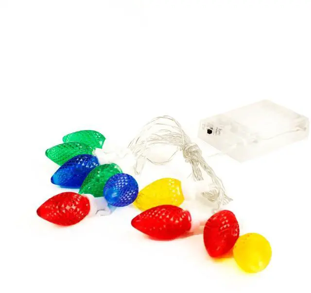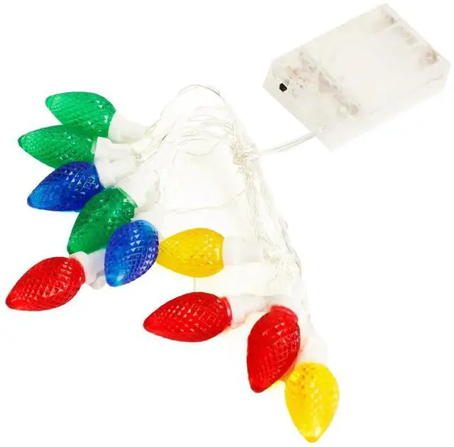 Decorate your home with these 10 LED multicolor string lights. Featuring bold red, green, blue, and yellow bulbs on a flexible clear cable, they create a brilliant holiday display. Battery operated for easy placement, these lights are perfect for hanging anywhere in your house for festive cheer.