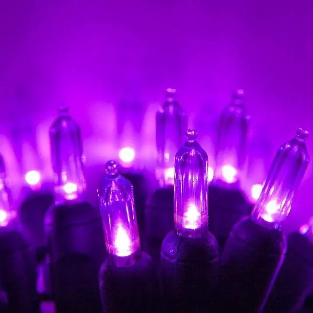 20 LED M5 String Lights Purple Bulbs on Black Wire, Battery Operated