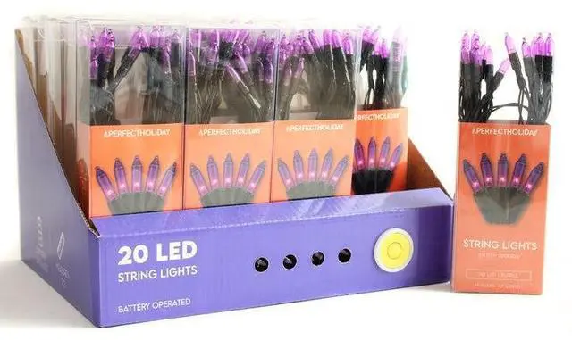 Add a bold and striking touch to your décor with these 20 LED M5 string lights. Featuring vibrant purple bulbs on sleek black wire, they are perfect for parties, events, or themed displays. Battery operated with a 3AA indoor battery box, they are easy to place and flexible for creative arrangements.