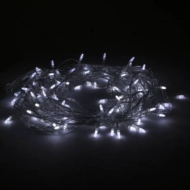 These 100 LED white string lights feature high-quality pointed LED bulbs, perfect for creating a bright and dynamic display. With 8 lighting modes, you can customize your lighting for any occasion. Powered by a standard US plug, these lights can connect up to 10 strands for extended coverage, making them ideal for indoor or dry outdoor décor.