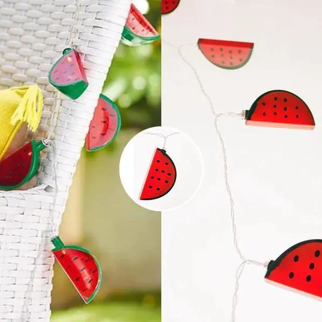 Bring a playful and festive touch to any space with these 10 LED watermelon string lights. Perfect for windows, trees, shelves, railings, and more, these battery-operated lights provide a warm white glow and can be placed virtually anywhere for holiday or everyday décor.