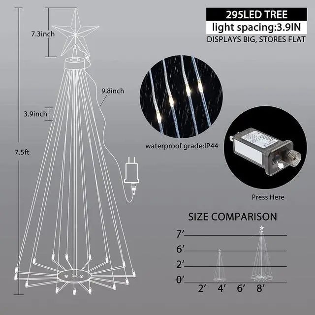 Bring vibrant, customizable lighting to your décor with this 5-foot RGB tree light. Equipped with an IR controller and 32-button remote, you can easily adjust colors, modes, and effects to create the perfect festive ambiance. Powered by a 5V/2A UL-rated transformer with a 10-foot lead cable, this energy-efficient tree light provides safe and long-lasting illumination for indoor or covered outdoor displays.