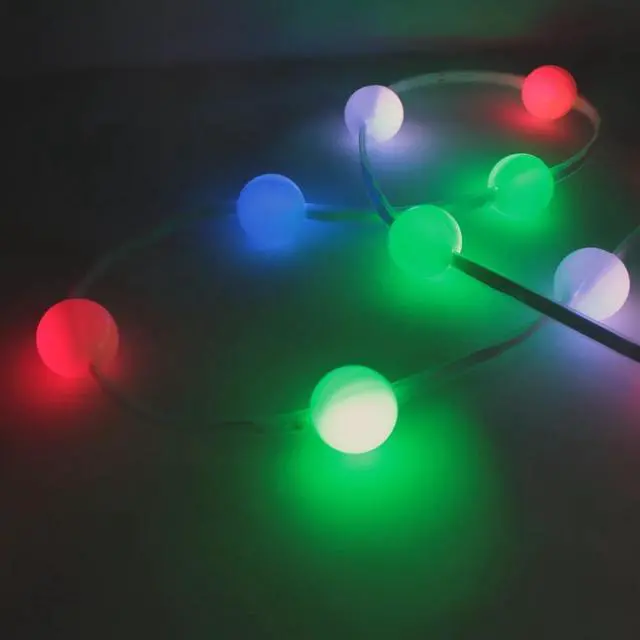 Add vibrant, colorful illumination to any space with this 150 LED RGB ball string light. Each LED is encased in a decorative ball, creating a festive and playful ambiance. Perfect for parties, holidays, events, or everyday décor, the flexible string allows for easy wrapping, draping, or hanging. Energy-efficient and long-lasting, these lights bring dynamic color to indoor or covered outdoor areas.