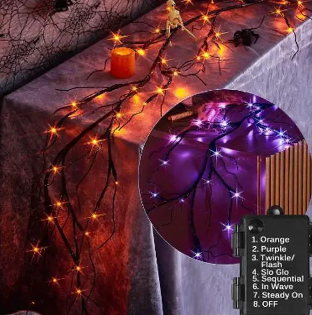 48 LED Black Branches Garland Lights 6FT Purple & Orange