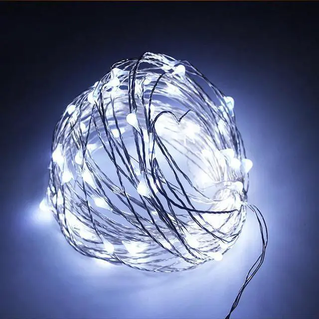 Brighten your indoor spaces with these 100 LED silver copper fairy lights. Featuring white LED bulbs on flexible silver copper wire, this plug-in set provides continuous, energy-efficient illumination. Perfect for decorating walls, furniture, shelves, or creating cozy ambient lighting for parties, weddings, and everyday décor.