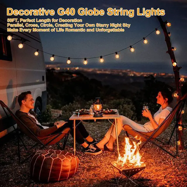 (Note: Dimmer not included) These G40 globe string lights support end to end connection up to 17 strands!! And with the easy installation cup hook you can fix it or place it anywhere as you need. Flexible and practical it is the connectable globe lights that you are looking for! Energy-Saving Say Goodbye To Expensive Energy Bills These outdoor g40 globe led string lights are included 50 clear G40 Bulbs and 2 spare bulbs. Unlike other string lights which use 5W bulbs which in high watt and easy to cause high cost our sting lights adopt energy saving bulbs one bulb only consume 1 watt just 25w per string in total saving a lot from others! Always headache while seeing the energy bill after have a occasion?