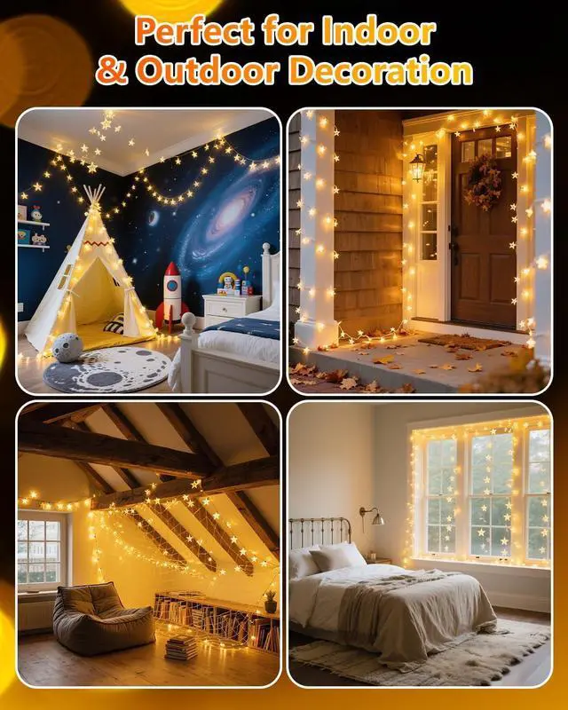 Energy Saving Bulbs: Updated little star string lights saving more energy than traditional lights. And prolong service time. IP44 Waterproof wire and bulbs could decor for indoor and outdoor such as bedroom pergola tree garden patio etc8