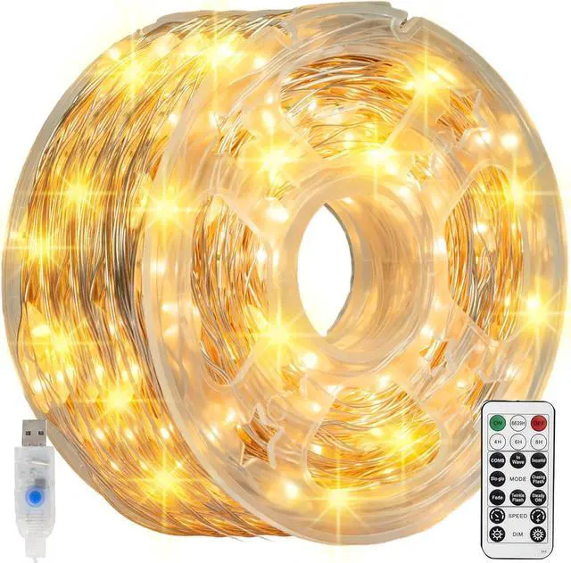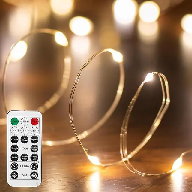 Remote Control: These fairy lights with remote are powered by USB. The remote control offers effortless operation allowing you to turn the lights on or off adjust the speed and brightness switch between 8 lighting modes and set timers for 4 6 or 8 hours.