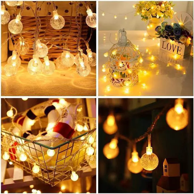 10ft/3m 20 LED Globe string lights beautiful plug in string lights ideal choice to create a warm and romantic atmosphere to enjoy your happy hours. Cozy warm white globe string lights could be easily put or hung on tables chairs walls windows doors floors trees balcony patios etc. Also as a great decorative night light to DIY kids bedroom. Plug in string lights are made of translucent plastic wont break like glass ones but never get hot enough to cause concern. More durable energy saving and environmental. Globe string lights with American standard socket can be turned on and off by directly plugging in and unplugging the power.