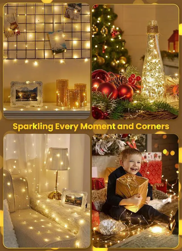 Use the included remote or battery box button to switch between 8 lighting modes (from steady to fading to flashing) and 10 brightness levels for the perfect ambianceBrighter & Adjustable Lighting Compared to standard battery fairy lights these upgraded christmas string lights for bedroom use brighter warm white LEDs and stronger silver wire. With 10 dimmable settings you can create a cozy glow or a festive sparklecustomized to any occasionPerfect for Any Occasion Whether decorating for Christmas weddings bedrooms or patios these energy-efficient battery powered fairy lights for bedroom add a magical touch. With 33 feet of length theyre versatile for any settingwrap them hang them or shape them however you like