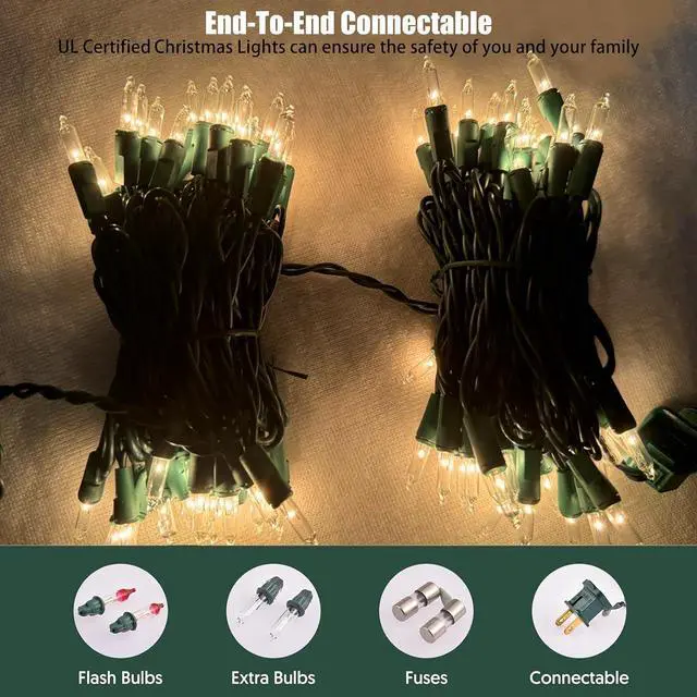 UL Certified Christmas Lights: Strictly tested and meets the US requirements of string lights UL safety standards to ensure & maximize the safety. UL Approved for indoor and outdoor use. Perfect for Christmas tree Thanksgiving Day Halloween birthday parties great for indoor and outdoor lighting decoration. 100 Mini Clear Bulbs