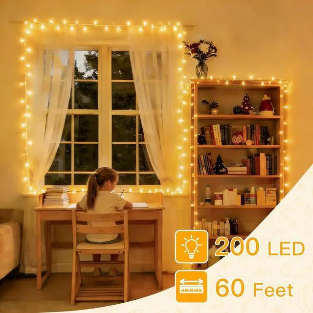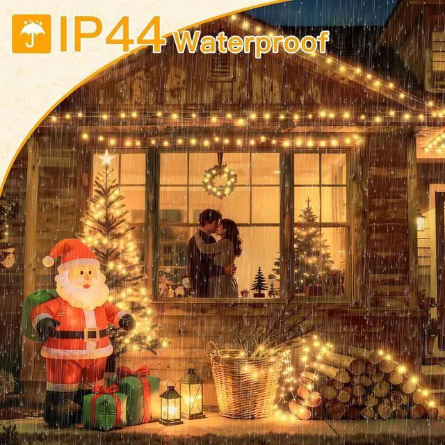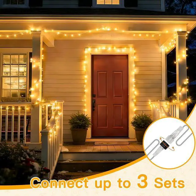 Connectable Design - 200LEDs over 60FT with the ability to connect up to 3 sets (controlled by one controller). Perfect for decorating smaller spaces like bedrooms patios or cozy outdoor corners. 8 Versatile Lighting Modes - Choose from Combination Waves Sequential Slo-Glo Chasing Slow Fade Twinkle or Steady On. Easily switch modes using the controller to create the perfect ambiance. IP44 Waterproof for Outdoor Use - Built to withstand rain snow and storms making these lights ideal for year-round outdoor displays without worrying about weather damage. Convenient Timer & Memory Function - Set the timer for 6 hours on and 18 hours off.