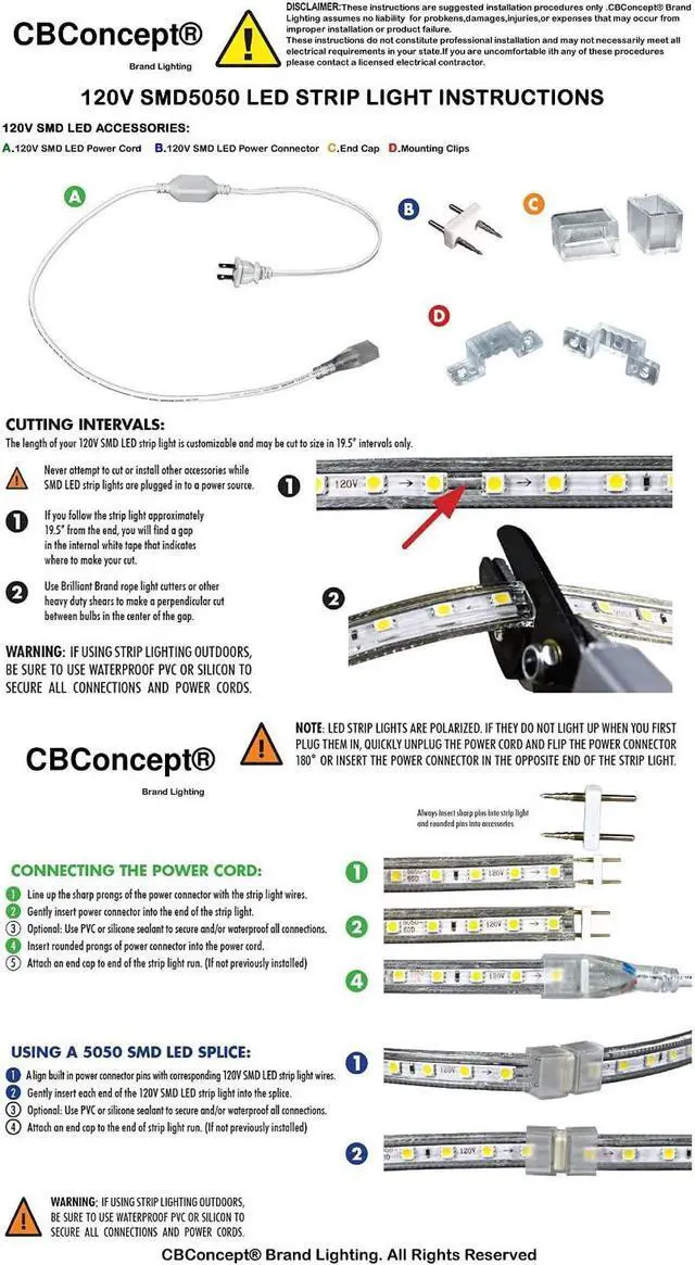 ][120V Advantage: High Brightness And Flexible. Can Plug Directly Into Household Power Outlet. Thicker Profile For Better Durability. Max Run Is 164'. ][We also offer custom length Please contact our sale representative for assistance. ] [We also have additional accessory for your