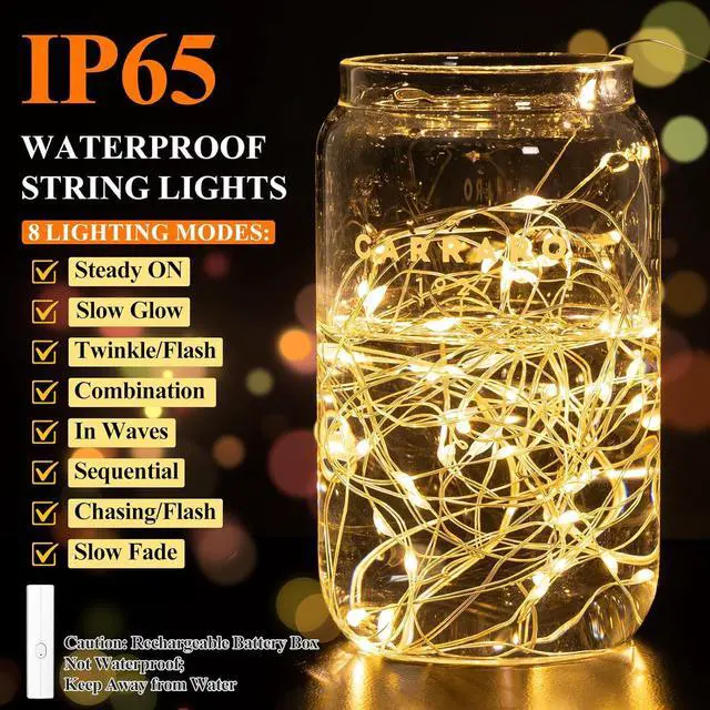 & Water-Resistant: Say goodbye to messy wires! These IP65-rated mini LED fairy lights battery operated feature tangle-free reinforced wiring that withstands humidity perfect for mason jars and indoor plants. Built to last they outshine ordinary battery string lights.