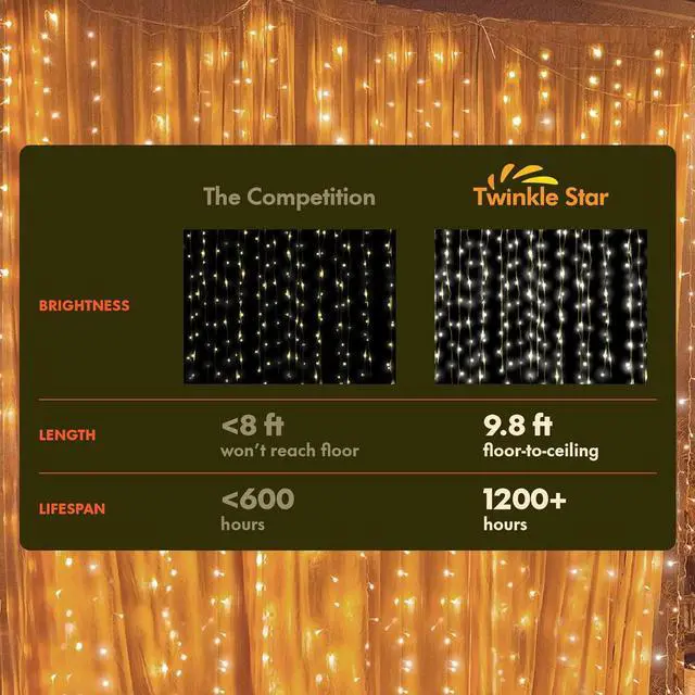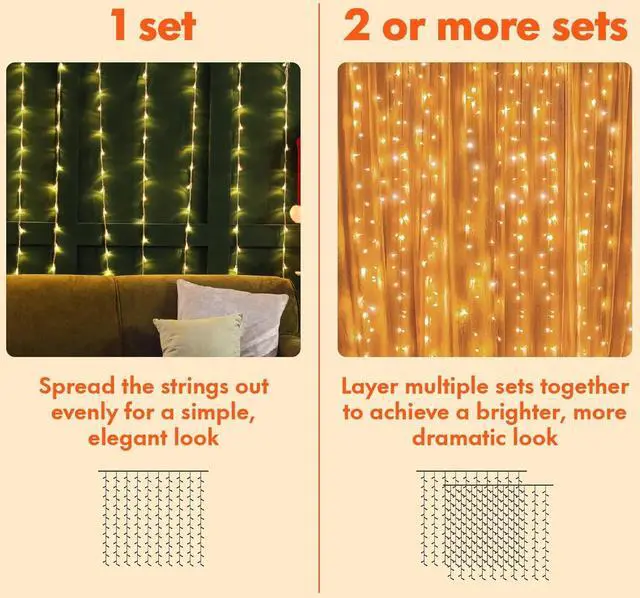 EASY OPERATION: Plug the led curtain lights in for instant power and unplug for quick shutdown. Designed for US standard outlets with a generous 9.9 ft leading wire for convenient positioning. - -THIS PRODUCT INCLUDES ONLY THE STRING LIGHTS AND DOES NOT COME WITH A CURTAIN.