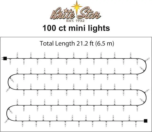 Max connect: 5 setsBrighten Any Space - The clear teal glow of these mini string lights makes them a perfect choice for any decor style. Whether you're looking for Christmas lights wedding decor or just some extra sparkle for your bedroom these lights offer the perfect blend of warmth and brightness. Versatile and Extendable - These Brite Star 100 Count Mini String to String Christmas Lights are ideal for indoor and outdoor use. They can be effortlessly connected to create a 110 ft long dazzling display perfect for your Christmas tree bedroom party wedding decor or outdoor settings. These light feature 2 pcs replacement bulbs and 1 pc fuse. Enjoy the warm inviting glow of these christmas lights and elevate your festive decor. Perfect for Various Occasions - In addition to Christmas these lights are also excellent for wedding decor bedroom decor parties porch garden or any other events that require a touch of light. Easy to Install - No Assembly Required! The lights come with a plug-in design making them easy to install use and extend. Simply plug them into any standard outlet to light up your space. The tight stranded wire reduces tangles.