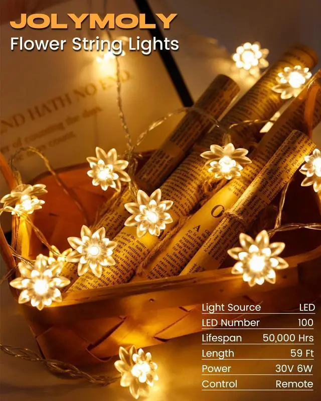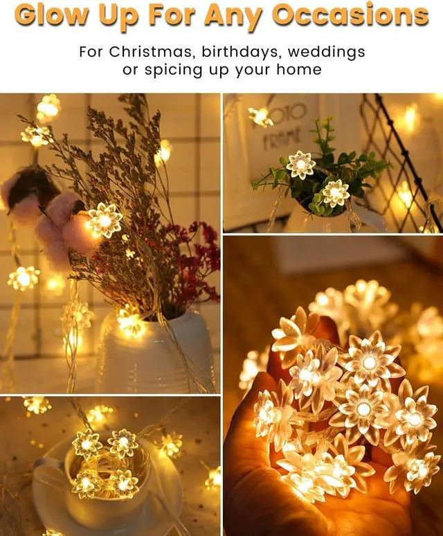10 ft lead wire solves the wiring issue and ensures you a smooth and enjoyable lighting experience.?? Versatile Application? Whether you're adding a warm glow to a special occasion improving your home's atmosphere or getting creative with crafts these cute lights are your go-to solution for a touch of magic in any setting. These ambiance light strings go beyond bedroom and Christmas decor. They're perfect for outdoor gatherings patio enhancement wedding decorations DIY crafts and so much more.?? Customer Service & Warranty? Each string lights come with 2 spare flowers.