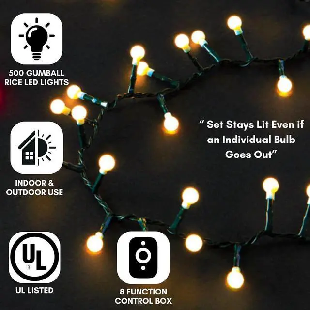 EXCEPTIONAL LIGHT STYLE: The Rice light with cap style brings a unique and elegant touch to your decoration. With 500 lights your setup will be brighter and more vibrant. The Green wire color blends seamlessly with your surroundings enhancing the overall aesthetic. Measuring 36' it perfectly fits various spaces making it versatile and easy to use.
