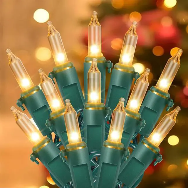 String Lights: Hopolon old-fashion incandescent Christmas lights 2 PACK 50 Count 13 FT Clear Christmas Mini String Lights (100 count total) perfect for indoor or outdoor decorationSteady-lit on: Our lighting sets can still stay lit when a bulb was removed loose or missing and easy to fix and replace with 4 spare extra bulbs and 4 replacement fuse when one of bulb burn out or breakEasy to