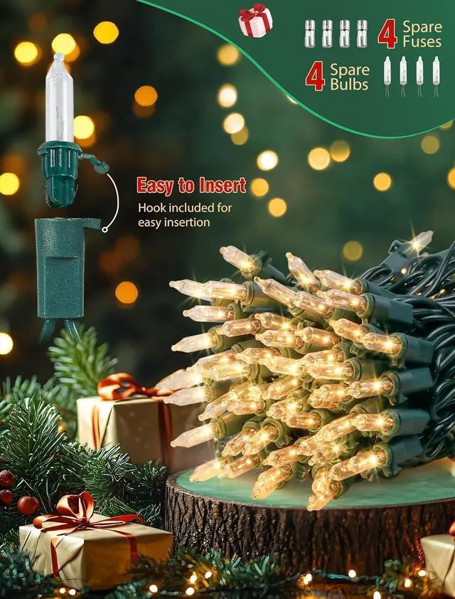 Include: 2 Pack × 50 count clear Christmas lights 4 replacement bulbs 4 fuses. Please feel free to contact our customer support team with any questions or concerns of our Xmas lightsLight up your holiday your home your life with Hopolon light string!