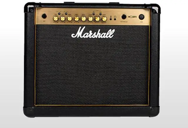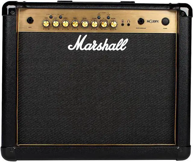The Marshall MG series of amps delivers a range of classic and modern tones, with all the essential features that players need, and so much more. All the amps in this range are fitted with an emulated headphone output to make silent practice easier than ever. No matter what stage youre playing on, these amps will look as great as they sound, thanks to their iconic gold piping and gold metal finish. The Marshall MG30GFX 30W combo is loaded with a single 10" speaker, as well as four storable channels. It also boasts built-in reverb, phaser, flanger, delay and chorus effects, as well as an aux.