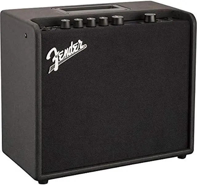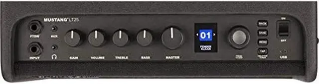 The Fender Mustang LT25 25W 1x8 guitar combo delivers legendary Fender sound quality in a versatile, portable combo thats perfect for new players. It features a simple interface with a collection of 30 curated presets that range from classic Fender cleans to modern metal and everything in between.