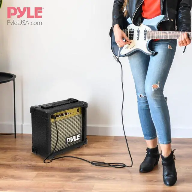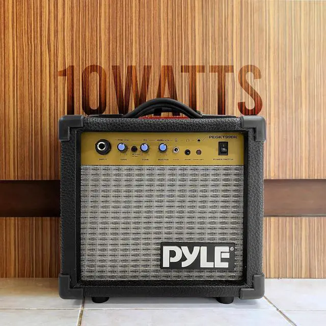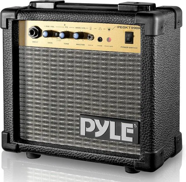 The ACCPEGKT99.5 Portable Guitar Amplifier delivers powerful sound in a compact and lightweight design, making it the perfect choice for musicians on the go. Featuring a 10W power output and a 5 loudspeaker, this amplifier is specially designed to enhance high-frequency response, offering clear and bright tones for your guitar. It includes useful features like a volume control, treble and bass adjustments, an input jack, and a headphone output for silent practice. The durable plywood cabinet is coated with high-quality leather, giving it a sleek and professional look. With a convenient carry handle and 1/4 phone and headphone jacks, its portable and easy to use anywhere. Whether you're practicing at home, on stage, or in the studio, the ACCPEGKT99.5 provides exceptional sound quality in a portable package. The set includes the 10W amplifier, and its designed for easy transport, ensuring that you can always take your music with you. Perfect for musicians who need reliable, high-quality sound wherever they go.