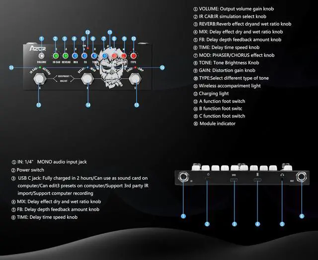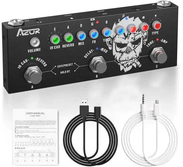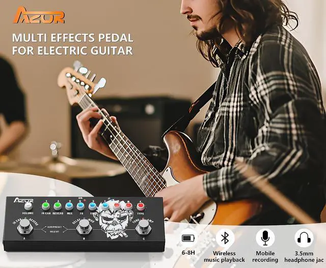 The AZOR Multi Effects Guitar Pedal has Bluetooth. Stream music wirelessly from your phone for accompaniment during practice and shows. Play backing tracks through the pedal for versatile solo sessions.