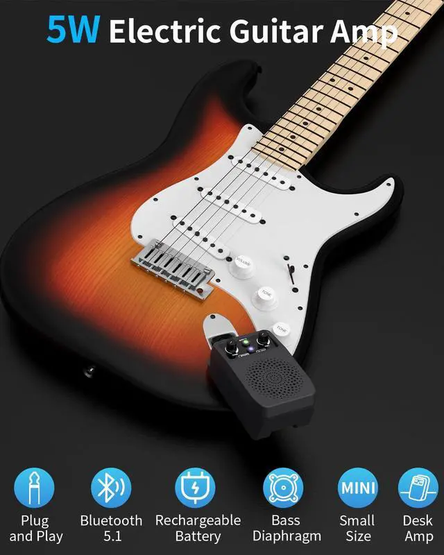 - The mini amplifier fits for all electric guitars with 6.35mm Jack