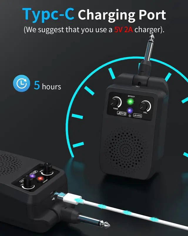 | Packing List | JA-05G Mini electric guitar ampx1, Owner's manual x1, Charging cable x1 |