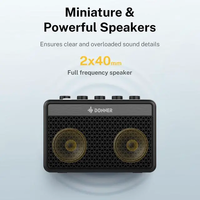 The special sound cavity spatial design allows it to produce a more dynamic and detailed sound than other mini electric guitar amplifiers.The design of the dual sound unit makes the high frequency sound more delicate, and the middle frequency sound more stereoscopic and sweet.