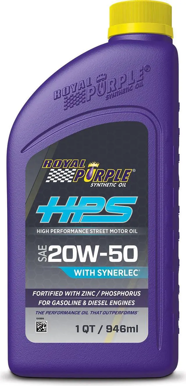 - Royal Purple HPS 20W-50 High Performance Street Synthetic Motor Oil with Synerlec - 1 Quart Bottle