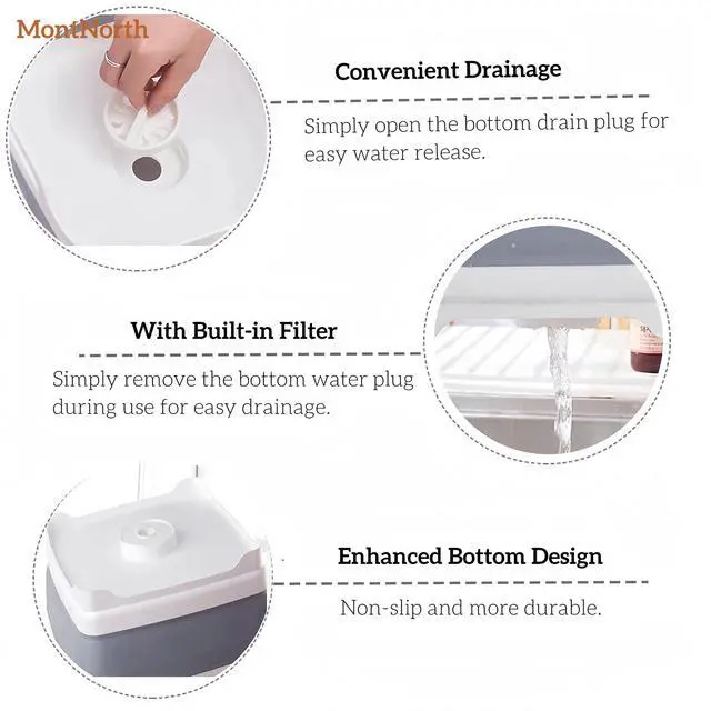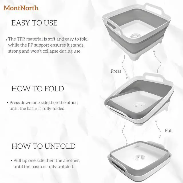 MontNorth Collapsible Dish sink is particularly useful for space-saving kitchens in the apartment . It is a practical washing sink tub that can be used in many ways. Works as an ice bottle in the patio, camping, and likely as a dish rack or fruit strainer. you can just drain water directly by twist a switch. When you travel, it can be used as a portable laundry basket.