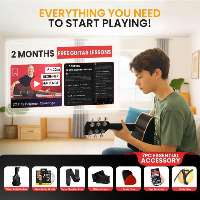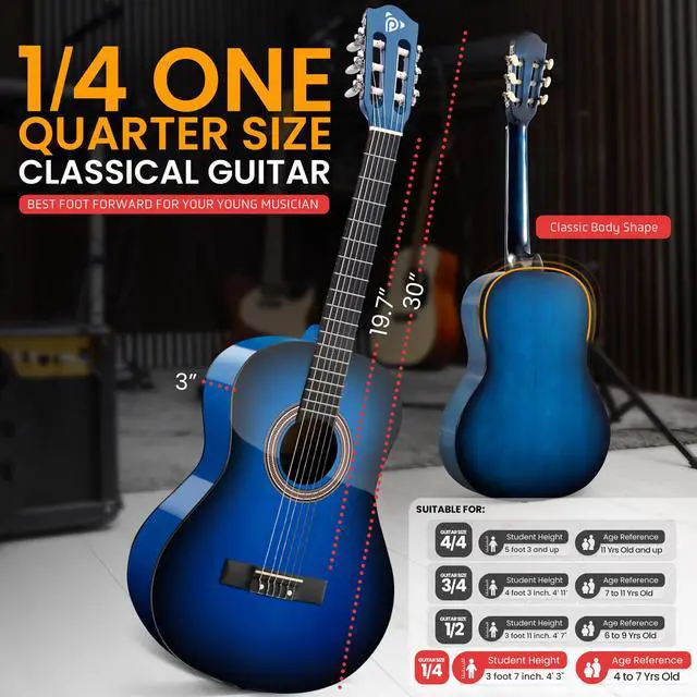 The PGACMS30BLU. 5 30 Acoustic Classic Guitar combines functionality and style in a sleek blue design. Perfect for both new players and experienced musicians, this 30 guitar delivers rich acoustic tones. The bundle includes a black guitar bag, a set of strings, three guitar picks, a black metal capo, and a guitar strap. Whether youre playing for fun or perfecting your skills, this versatile guitar will help you produce great sounds wherever you go.