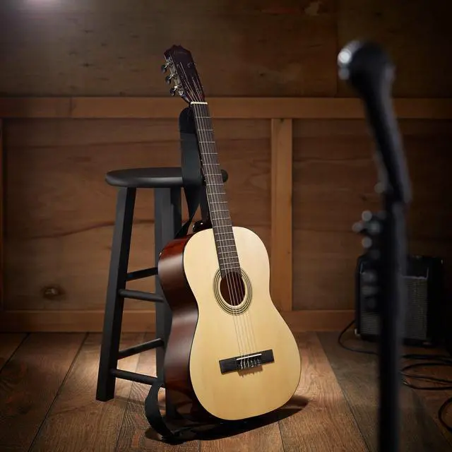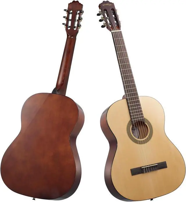 Beautifully designed, with no detail overlooked. This classical acoustic guitar features a classic wide neck, walnut bridge, 19 smooth frets, double-action truss rod, professionally finished 3-in-line machine head, and high-style tuning pegs. The full, bright tones of classical, flamenco, traditional folk, and jazz music are waiting to be played.