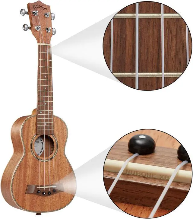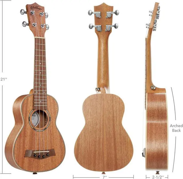 No matter your skill level, you will feel right at home navigating the frets and strings on this well-finished ukulele. Whether you choose the Soprano or Concert size, the solid mahogany neck, smooth walnut fretboard with well-seated silver nickel frets, and walnut pinned bridge offer high performance and allow this ukulele to be easily played.