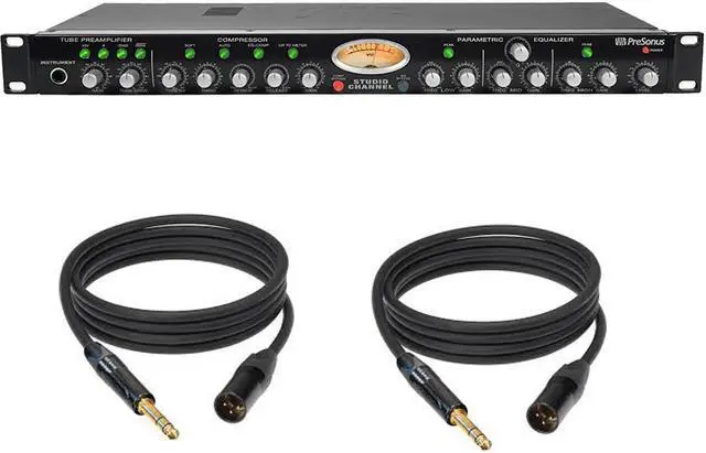 The Presonus Studio Channel is a channel strip that features a tube preamp, a VCA compressor, and a 3-band parametric EQ. The tube preamp section features two knobs: Gain and Tube Drive. This allows you to adjust the amount of signal that hits the tube circuitry, opening up a wide range of sonic options. The VCA compressor section is well-suited to help all different kinds of audio sit nicely in a mix, whether it's percussion with fast transients, or smooth and silky vocals. The parametric EQ features a custom amplifier with a gain control on each of the 3 bands, with a variable Q knob on the mid frequency. If you're curious about outboard gear and want to upgrade your signal path from the stock preamp found on most audio interfaces, the Presonus Studio Channel is an excellent choice for deeper sonic exploration. Likewise, experienced professionals will appreciate the Studio Channel's solid set of sound shaping tools, as well as its afforable pricetag. Class A Vacuum Tube Preamp The Studio Channel features a high voltage 12AX7 tube with both Gain and Tube Drive controls, giving you the ability to dial in a variety of different tones. VU Meter The illuminated VU meter displays both output level and gain reduction. A Host of Useful Tools and Controls 80Hz High Pass Filter 20dB Pad Phase Invert Make Up Gain, Auto, and Soft (Compressor Section) Low Noise Design