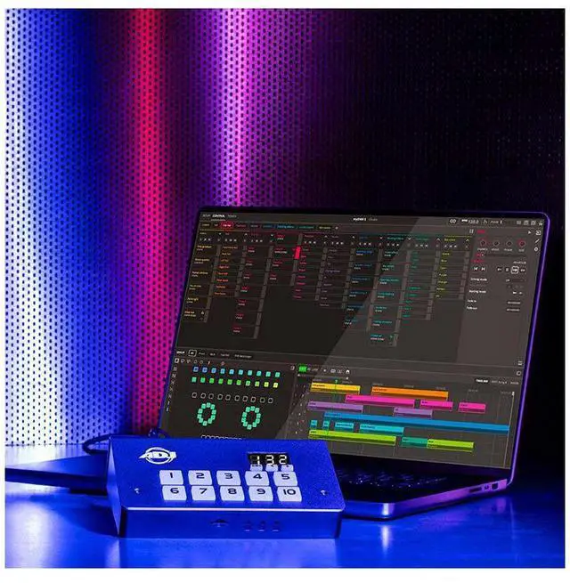 American DJ continues expanding their line of reliable DMX devices with the myDMX 5 Lighting Control Software/Hardware System. Elevate your DMX lighting control with this cutting-edge controller/software that features an extensive library of over 20, 000 fixtures, drag-and-drop functionality with an innovative super scene timeline, 3D visualizer, 2D position view, a dynamic live mixer, and seamless control via app using your iPhone, iPad, or Android devices. The myDMX 5 is a great solution for a lighting designer in need of simplicity while being able to create stunning synchronized light shows.