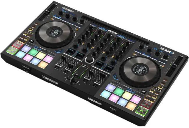 Professional DJs in search of a 4-channel DJ controller will be impressed with the Reloop Mixon 8 Pro, a 4-channel hybrid DJ controller for Serato DJ Pro and Algoriddim djay Pro AI. The controller features enhanced jog wheels with integrated LCD displays for real-time information. The dual audio interface allows for seamless transitions between DJs. There are two USB inputs; one USB Type-B and one switchable USB-C / Type-B inputs, which are compatible with the latest Mac and iOS technology.