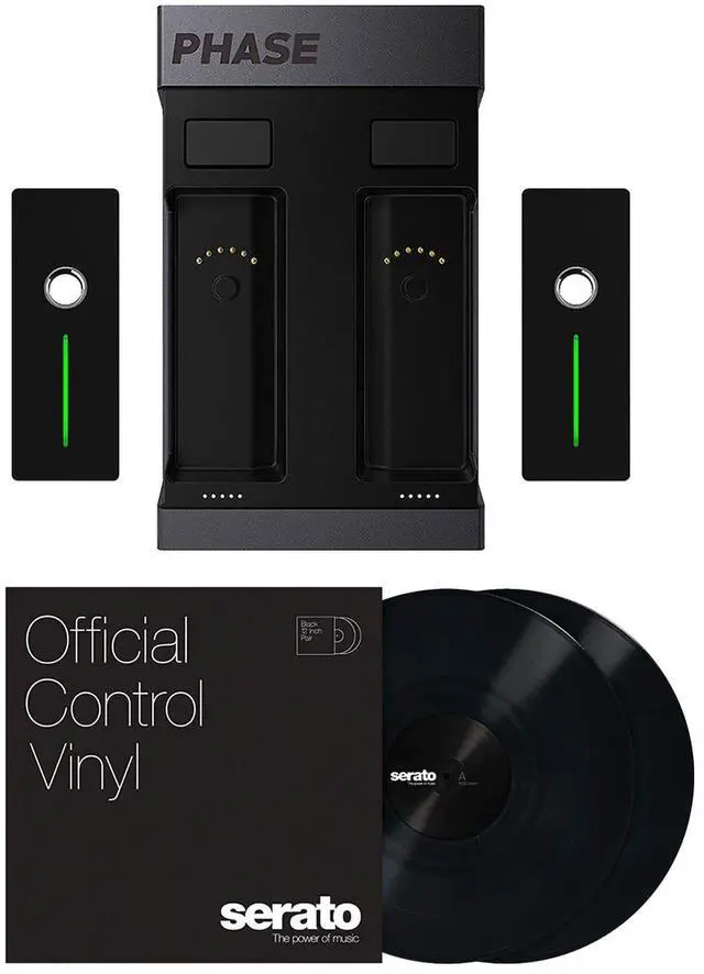 Using the Phase control system is easy simply place the Phase transmitters atop your turntables, and Phase will track even the smallest movements of the turntable. A control signal is wirelessly transmitted ( 2.4GH z band) to the dock, which is connected to your DVS software via RCA cables. Spin and scratch your records all you want Phase will track every movement with precision. DJs are impressed with the responsive feel of the Phase control system, and were sure you will be too.