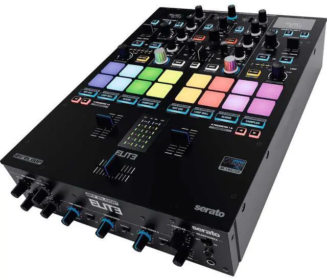 A digital LCD shows information regarding pitch, BPM, deck assignment, scales and notes, elapsed/ remaining time of current track, and firmware settings. A highly beneficial feature allows one to match track BPMs without looking at a computer screen. The 8 large RGB pads can control over 7 different performance modes (Cue, Sampler, Saved Loops, Pitch Play, Loop, Loop Roll, Slicer), as well as 2 user modes, which can be custom assigned with individual preferred functions. Additionally, the multi-encoder allows for track browsing direct from the deck itself and can instantly load to the respective deck.