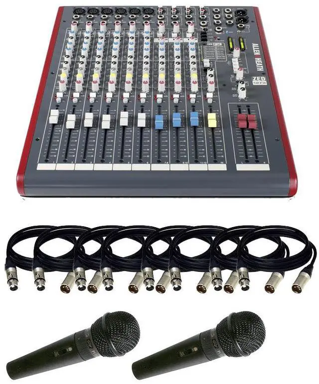 Allen & Heath ZED-12FX 12-Channel Recording Mixer with USB Connection and Effects + (8) XLR Cables 15FT and (2) Wired Microphones
